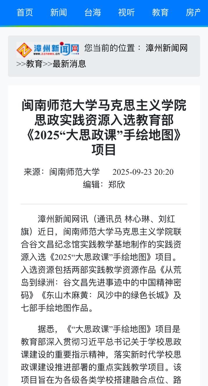 1、漳州新闻网:9728太阳集团思政实践资源入选教育部《2025“大思政课”手绘地图》项目
