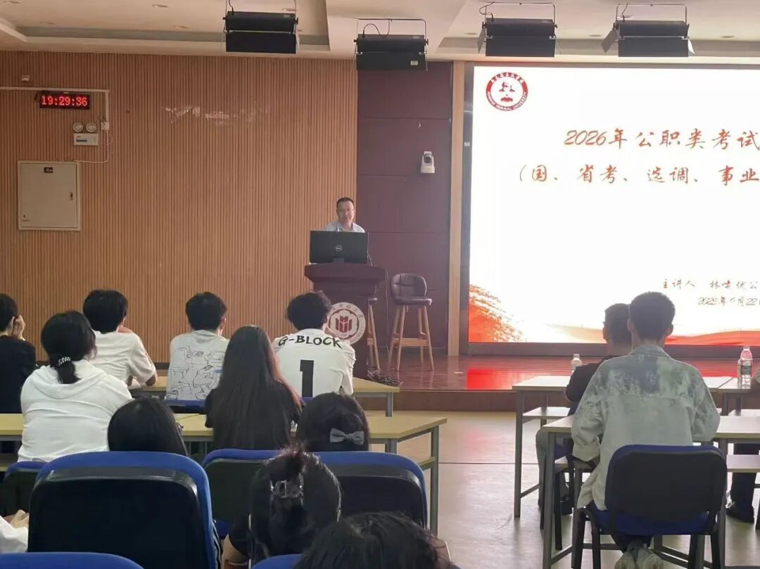 9月28日晚,我院于励志楼120开展“2026年公职类考试全程备考指导”专题讲座。本次讲座由优公教育校长林啸主讲,院党委副书记邓战军主持,23级全体学生参加。(通讯员 黄娇萍)